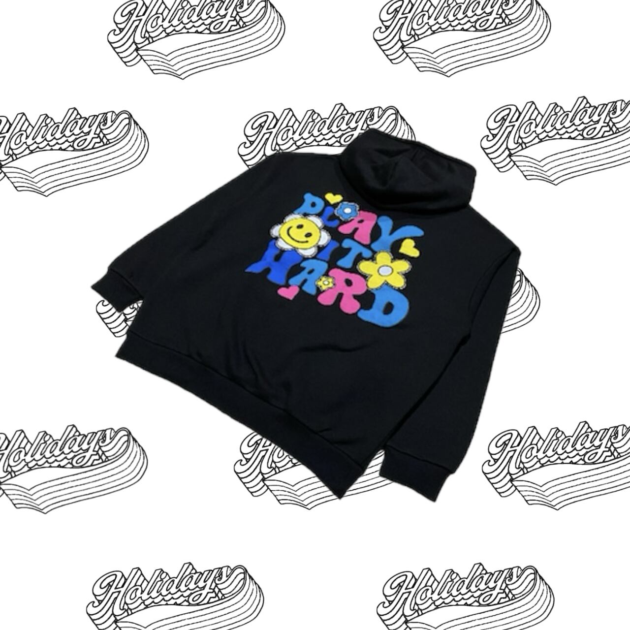 Play It Hard Smiley Print Hoodie